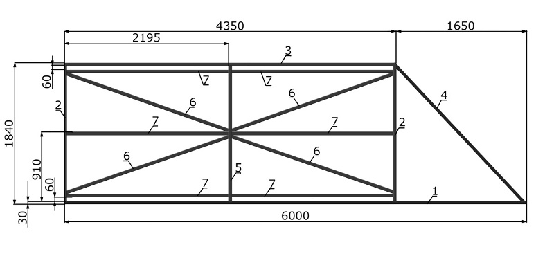 Комплектующие (заготовка) для откатных ворот под проём 3500х2000 мм (набор-комплект нарезанных труб)