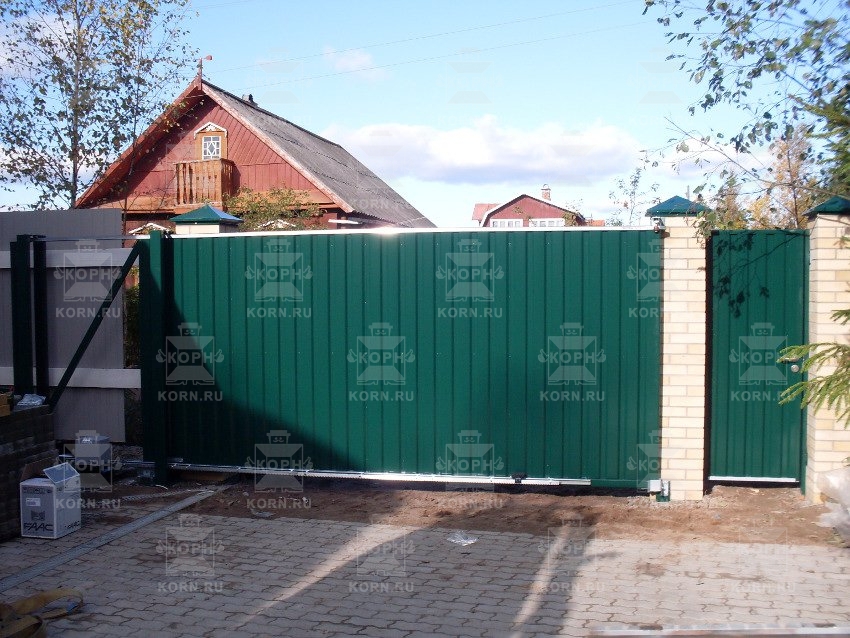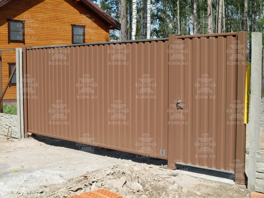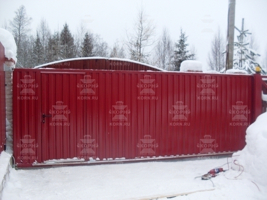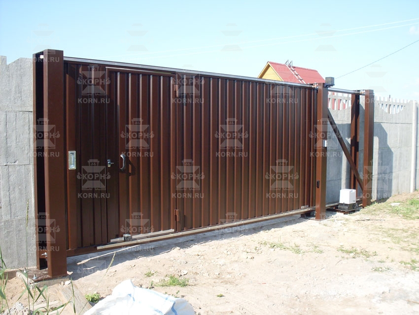 • Откатные ворота серии ЕВРО с врезной калиткой Откатные ворота серии ЕВРО с врезной калиткой