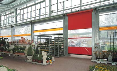 Скоростные ворота используются в качестве внутренних и наружных ограждений для оптимизации транспортных потоков, для улучшения микроклимата в помещении и для сокращения энергозатрат. Полотно скоростных ворот изготавливается из ПВХ, армированного прочным полиэстером, при желании может быть установлена прозрачная вставка для обзора пространства за воротами. Каркас и все короба изготавливаются из алюминиевого сплава или стали. Ворота отличаются высокой пропускной способностью при минимальных тепловых потерях.